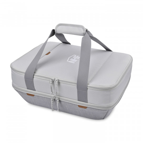 Make transporting meals easier with this insulated casserole carrier designed to hold up to two 9x13 pans. With dual foil-lined compartments, it keeps food hot or cold until you’re ready to serve. Convenient features like a padded handle and top pocket make it practical for potlucks, picnics, or family gatherings.