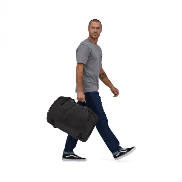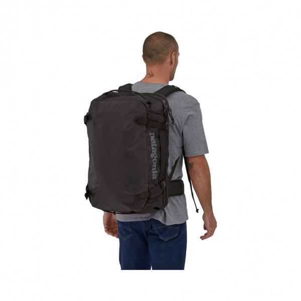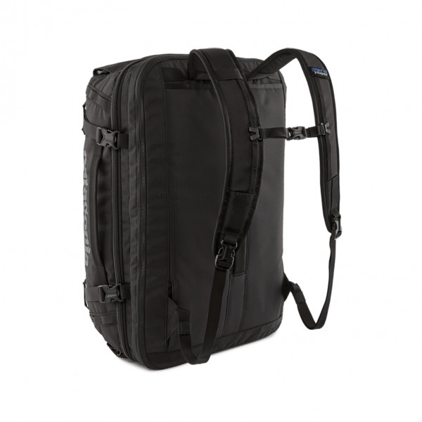 The classic Black Hole MLC bag is a burly, soft-sided 45-liter suitcase with enough room for world travel and convertible backpack straps for comfy load carrying, and is made with 100% recycled body fabric, lining and webbing and coated with a 100% recycled TPU laminate. Meets most carry-on requirements. Fair Trade Certified sewn.