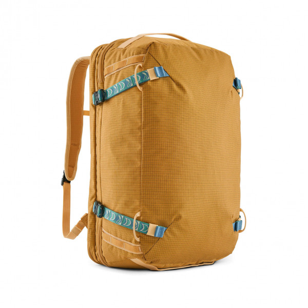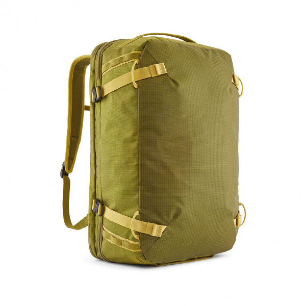 - Three carrying configurations allow bag to be used as a backpack, a shoulder bag or a duffel, and all straps tuck away when not in use; external lash points add the ability to accommodate more gear. Padded, stowable hip belt takes weight off the shoulders in backpack mode and doubles as the shoulder strap in briefcase mode.