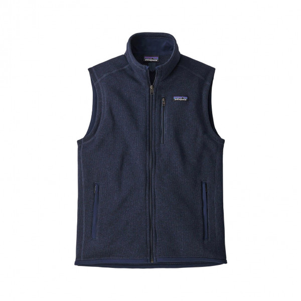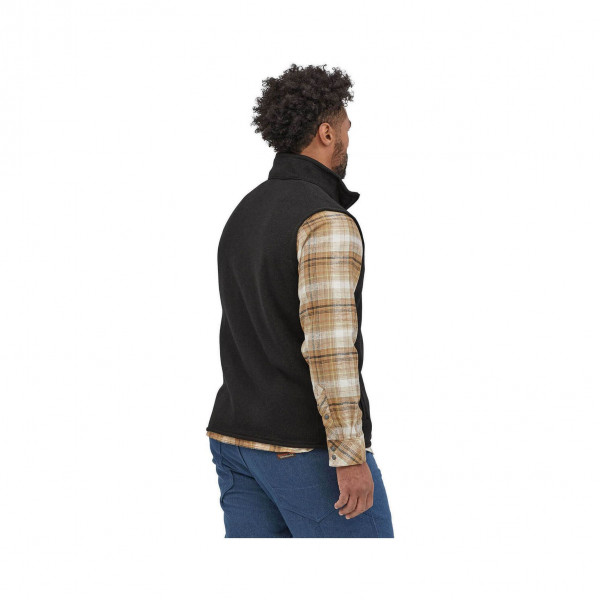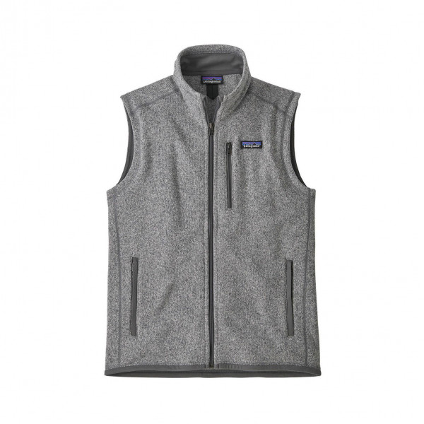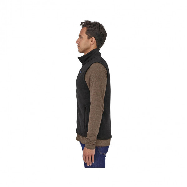 This men's full-zip fleece vest combines the classic look of a sweater with the warmth and performance of fleece. Made from 100% recycled polyester, it offers a soft interior and a heathered exterior, providing both comfort and style. The vest features a stand-up collar and zippered pockets, making it suitable for various activities and layering options.