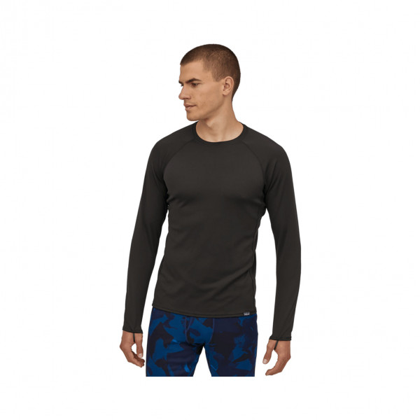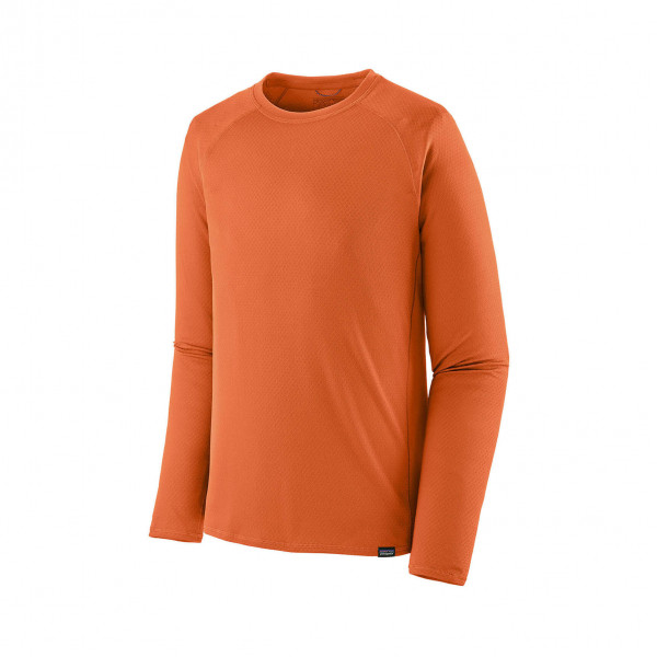 The Men's Capilene® Midweight Long-Sleeve T-Shirt is a versatile baselayer designed for active pursuits in cool to cold conditions. Crafted from 100% recycled polyester, it features a smooth outer face for easy layering and a diamond-grid interior that traps warmth, wicks moisture, and dries quickly. The inclusion of HeiQ® Pure odor control technology ensures long-lasting freshness, making it an ideal choice for extended wear. With thoughtful design elements like raglan sleeves and underarm gussets, this shirt offers enhanced mobility and chafe-free comfort during movement.