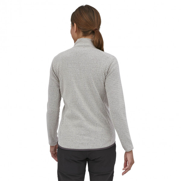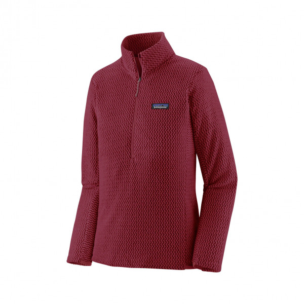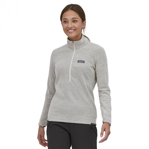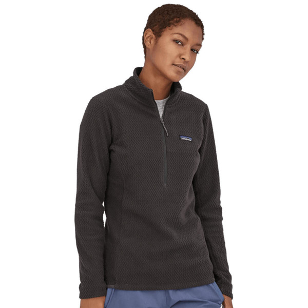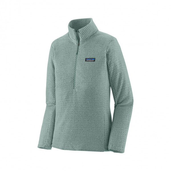 The Women's R1® Air Half-Zip is a lightweight, breathable, and quick-drying technical fleece designed for high-exertion activities in cold conditions. Made from 100% recycled polyester jacquard fleece with hollow-core yarns, it features a unique zigzag texture that efficiently wicks moisture and enhances airflow. The half-zip design allows for easy ventilation, while the minimal bulk ensures comfortable layering under outerwear. Offset shoulder seams reduce chafing under pack straps, and the internal left-chest pocket provides convenient storage for small essentials. Fair Trade Certified™ sewn, this pullover combines performance with sustainable design