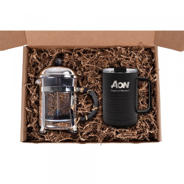 This custom set is perfect for staff appreciation, and includes a Patriot 16oz Mug and a Bodum Chambord Press Coffee Maker 17oz. Make your staff smile with this branded bundle! Include a custom greeting card for another level of appreciation.