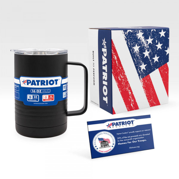 The Patriot 16oz insulated stainless steel mug keeps your favorite drink ice cold or steaming hot for hours. Patriot products are designed with the highest quality materials to withstand the toughest conditions.