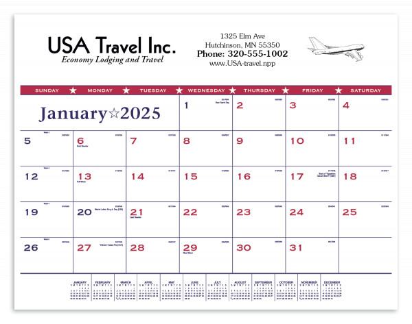 Display your logo or message with pride on this Flag Desk Pad. Ample memo space for the advertising message and writing make this desk calendar practical for everyone.