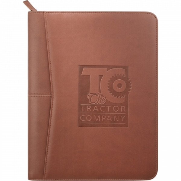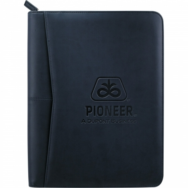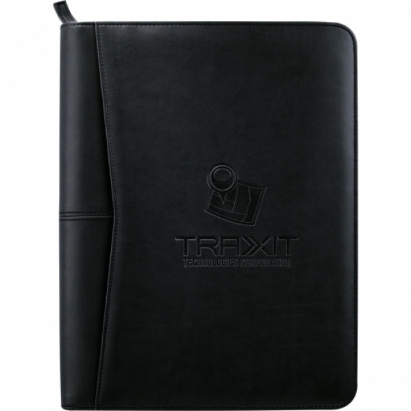 ::Zippered closure. Gusseted document pocket. <br />::Slash pocket. Pen loop. Six business card holders. <br />::Two USB memory flash drive holders. <br />::Two mesh ID windows. <br />::Gusseted elastic media pocket. <br />::Includes 8.5" x 11" writing pad.