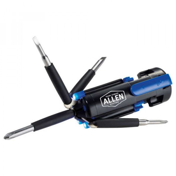 The Penta 6-in-1 Screwdriver Flashlight is a convenient size foldable screwdriver tool with a combination of hex star head flat and Philips styles. ::Also features a four-white LED flashlight with an on/off power switch on the back.