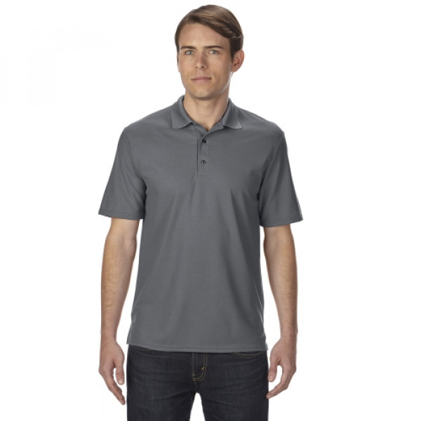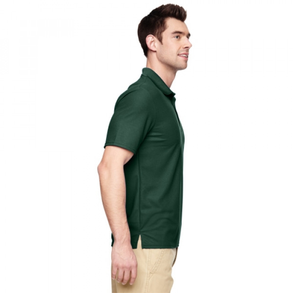 Fabric:::100% polyesterFeatures:::Clean finished three-button placket with reinforced bottom box::Contoured welt collar; moisture-wicking::Heat transfer label::Sideseamed with side vents::Joker label on sideseam::Double-needle sleeve and bottom hem::Color matched pearlized buttons