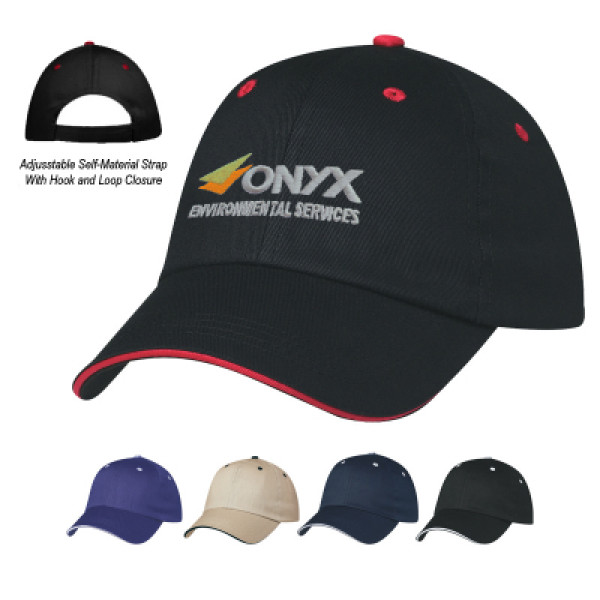 ::100% Cotton Twill::6 Panel, Medium Profile::Unstructured Crown With Pre-Curved Sandwich Visor::Adjustable Self-Material Strap With Velcro® Closure