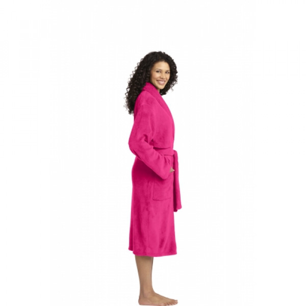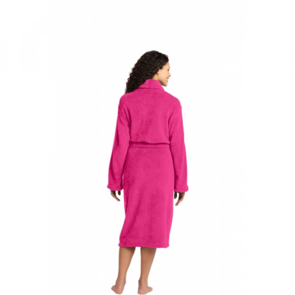 Pamper yourself at the spa resort or at home in this luxurious shawl collar robe that will keep you warm and cozy.::8.5-ounce 100% polyester fleece ::Two patch pockets at hips ::Self-fabric belt and loops for easy adjustment ::Measures:32 -40 chest 47 length (S/M); 40 -54 chest 50 length (L/XL)
