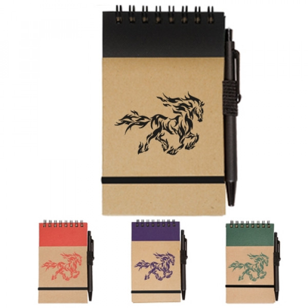 Featuring a cardboard cover made from recycled paper and 60 pages of ruled, recycled paper, the Pocket Eco-Note Promotional Jotter is an environmentally-friendly promotional jotter. Available with seven trim colors, the Pocket Eco-Note Promotional Jotter comes complete with an elastic closure, metal ring binding, elastic pen loop and Micro-Writer pen.::Recycled cardboard cover::60 sheets of ruled, recycled paper::Includes Micro-Writer pen