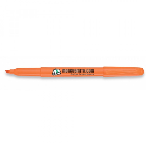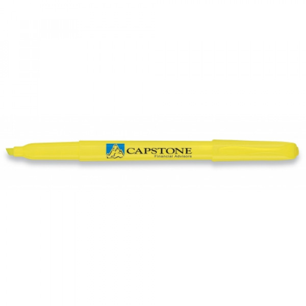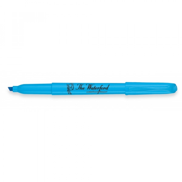 The Pocket Accent highlighter adds fun and excitement to your promotional message. A fashionable clip and several vibrant barrel colors turn a simple highlighter into a colorful, traveling billboard. Your logo is highlighted with style with the Pocket Accent! ::Smear Guard smear-resistant ink ::Ink color matches cap color. White barrel has yellow ink. ::Pocket Accent can be customized with a multi-color imprint for maximum impact. ::Made in the U.S.A.