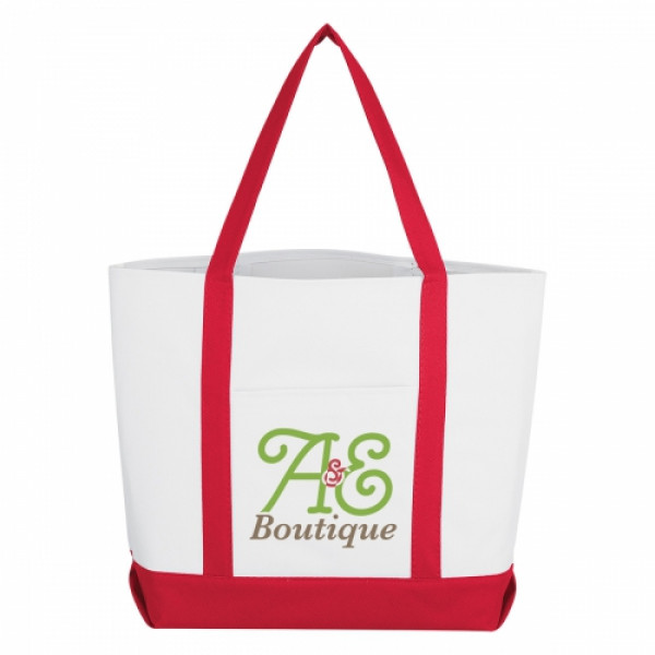 ::Made Of 600D Polyester With PVC Backing::Front Pocket::Matching Bottom Gusset And 16" Handles::Spot Clean/Air Dry