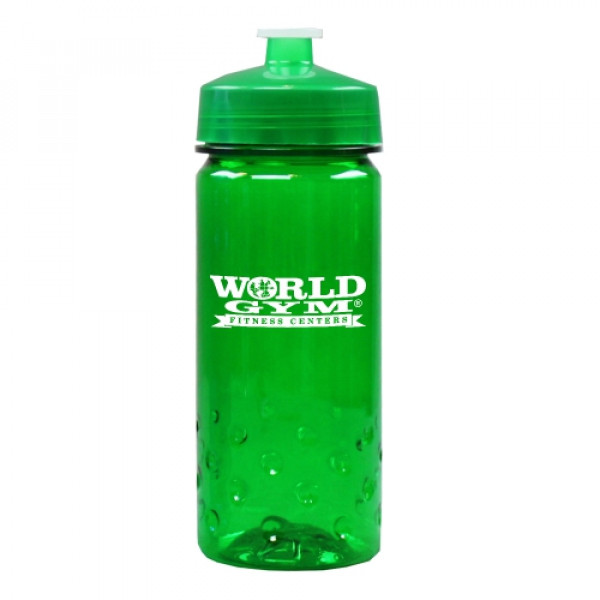 Food grade PET bottle has a distinct thin Euro body with a bubble designWide-mouth design makes it easy to add ice cubesFeatures a high-gloss finish and a leak-resistant push-pull lidFits most auto cup holdersHand wash onlyBPA freeCPSIA compliant