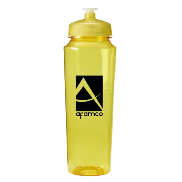 ::Food grade PET bottle is reusable and recyclable::Reveals drink measurements from 4 oz to 24 oz (100 ml to 700 ml)::Features a high gloss finish and a leak-resistant push-pull lid::Wide-mouth design makes it easy to add ice cubes::Ships assembled::Hand wash only::BPA Free::Fits most auto cup holders