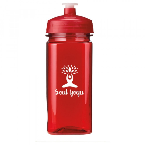::16 oz. food grade PET bottle has four sides and is easy to grip::Features a lustrous high gloss finish::Wide-mouth design makes it easy to add ice cubes::Includes a leak-resistant push-pull lid::Hand wash only::BPA free