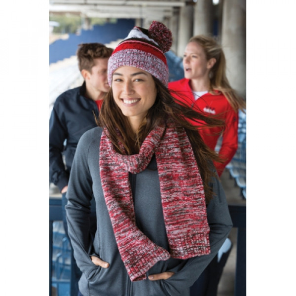 Stay warm and show your team spirit with this chunky-knit beanie featuring three team colors and a fun, oversized pom pom. Made from 100% acrylic, it's soft, cozy, and perfect for cheering in the stands or braving chilly weather.