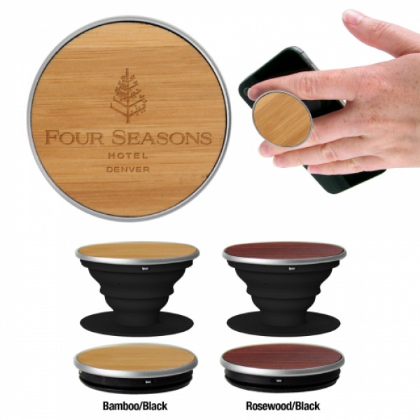 Enhance your mobile experience with the Pop Wood Phone Stand & Grip. Designed with a sleek wooden finish, this stylish accessory offers a secure grip for your phone, preventing drops while allowing for easy one-handed use. It also functions as a convenient stand for hands-free viewing. Perfect for branding, the Pop Wood can be customized with your logo, making it an excellent promotional item.