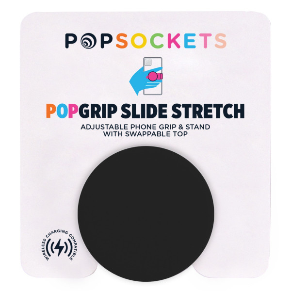 The PopGrip Slide is a versatile phone accessory that clips securely to the sides of most phone cases, allowing for easy repositioning to suit your needs. Slide it down for portrait-mode video chats, center it as a kickstand for landscape viewing, or adjust it for a comfortable grip during texting and swiping. For wireless charging, simply slide it off to use with any standard Qi charger. This flexibility makes the PopGrip Slide an ideal branded accessory for those who value adaptability.