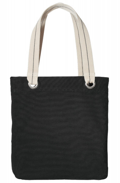 The Allie Tote is perfect for shopping, commuting or sightseeing. Contrast lining, striped handles and large metal grommets add a touch of whimsy to this casual tote.