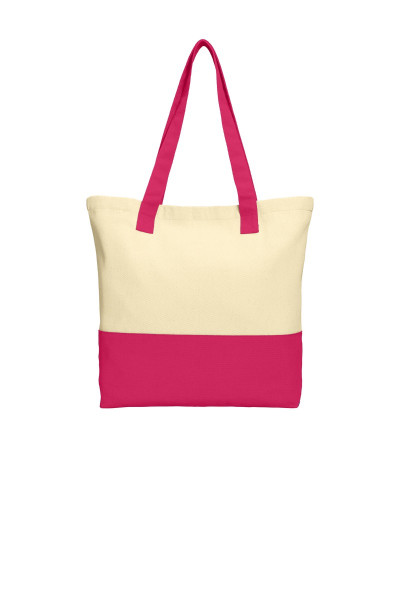 This versatile cotton tote has colorblock handles and bottom for on-trend style and a modern look.