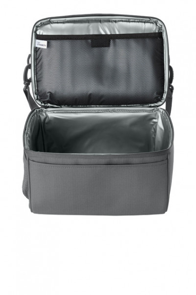 - Zippered, insulated main compartment can hold up to six 12-ounce cans