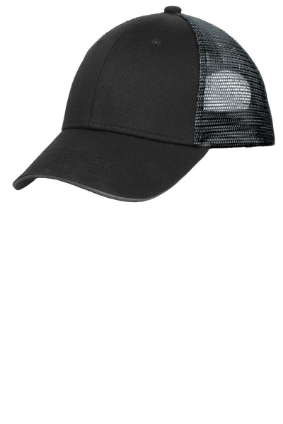 Our two-tone mesh design makes this breathable cap stand out. The front panels are black twill, while the mid and back panels layer color under the mesh for an iridescent effect.