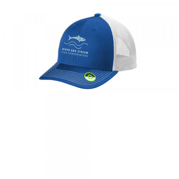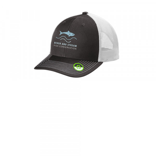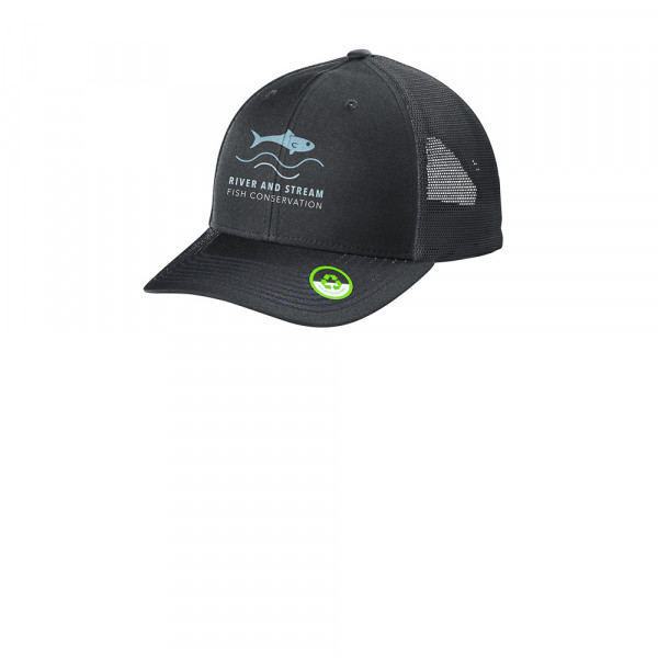 100% recycled polyester twill front panels and bill, 100% recycled polyester mid and back mesh panels
