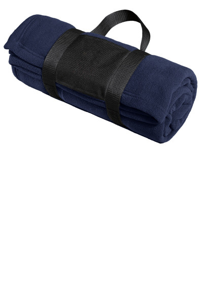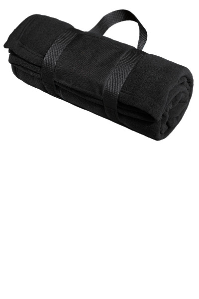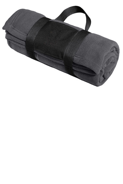 This soft fleece blanket--perfect for taking the chill off--comes with a strap with ample room for a logo.