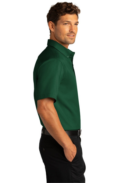4.3-ounce, 55/45 cotton/poly twill Stain release Wrinkle-resistant Easy Care Button-down collar Dyed-to-match buttons Left chest pocket Back yoke with box pleatDetails