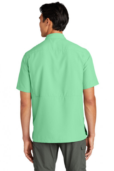 2.2-ounce, 100% polyester poplin 2.5-ounce, 100% polyester poplin (White) Moisture-wicking UPF rating of 30 Hidden button-down collar Dyed-to-match buttons Two chest pockets with concealment flaps and hook and loop closures Vented back panel with mesh ventilation Straight hem with side ventsDetails