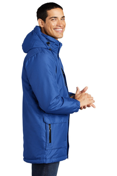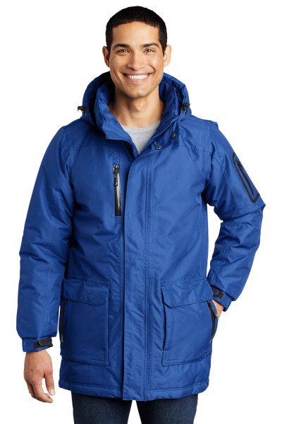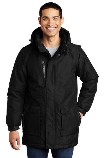 100% polyester shell with 100% polyester body lining and fill 8000MM fabric waterproof rating Fully seam-sealed for added waterproof protection 3000G/M² fabric breathability rating Snap-off adjustable hood Full-length exterior storm flap Two-way Vislon® zipper Waterproof welded sleeve pocket Waterproof zippered pockets Hand warmer pocket Bellow pockets for storage Molded adjustable tab cuffs with hook and loop closures Interior pocket Port Pocket™ for easy embroidery accessDetails