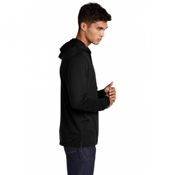 This ultracomfortable long sleeve hoodie combines moisture-wicking performance, unbeatable softness and PosiCharge technology to lock in color.::4.4-ounce, 75/13/12 poly/cotton/rayon jersey with PosiCharge technology::4.6-ounce, 75/13/12 poly/cotton/rayon jersey with PosiCharge technology (Black Triad Solid)::Removable tag for comfort and relabeling::3-panel self-fabric hood and drawstrings::Open cuffs and hem::Side vents