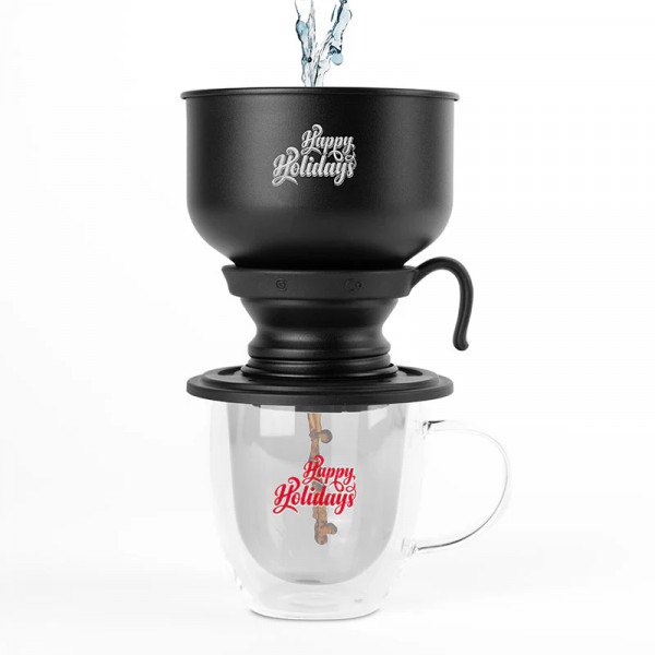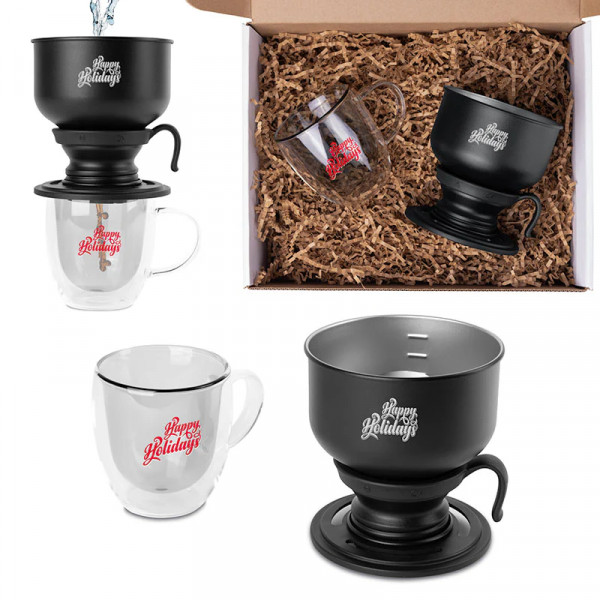 A must-have for any coffee enthusiast, this elegant set combines functionality with modern design. The Pourfect Pair Coffee Set includes a durable stainless-steel pour-over coffee maker and a sleek double-wall glass mug for a premium brewing experience. This high-quality duo makes a perfect promotional product that can be custom branded with your logo to elevate your coffee moments or corporate gifting.