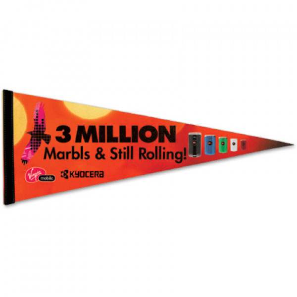 The 12" x 30" Premium Felt Pennant is a bold and durable way to showcase school spirit, team pride, or corporate branding. Crafted from plush, wrinkle-resistant felt, it features a generous imprint area for vibrant, full-color designs. The pennant includes a 1" sewn strip for added durability and can be rolled up for easy mailing. Optional features like sewn-in advertisements and pennant sticks enhance its versatility, making it ideal for events, promotions, and mailer campaigns.