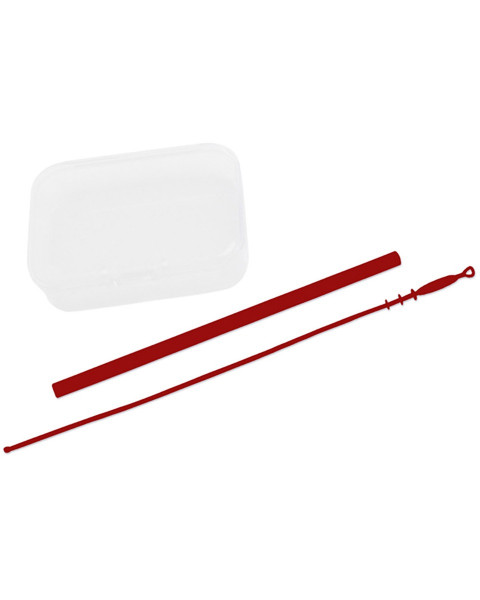 Clear case with reusable straw and cleaning brush Straw measures approx 8.5"l x .025"dia Cleaning brush measures approx 13.75"l Hand-wash only Instructions included Product Size: 2.625" w x 0.75" h x 1.75" d Deco EligibleDetails