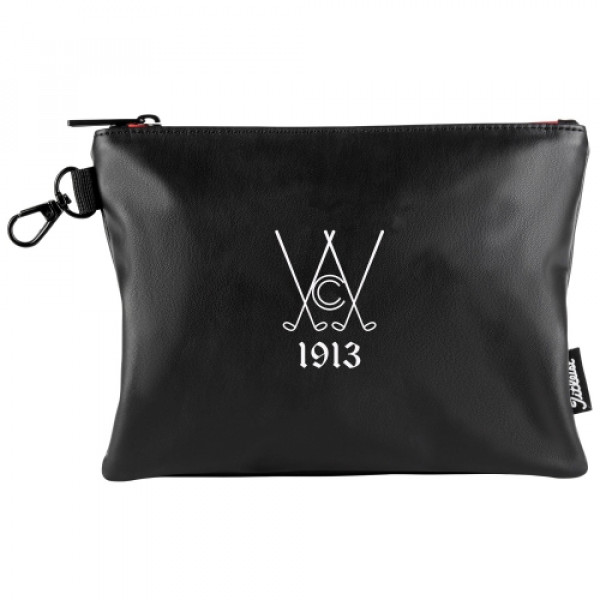::A must have for every golfer, the Titleist Zippered Pouch is an excellent way to store your valuables and keep your items safe and organized throughout your round::It’s leather construction provides style and lasting durability::A large opening and zippered closure allow you to easily store your small, on-course accessories in your golf bag
