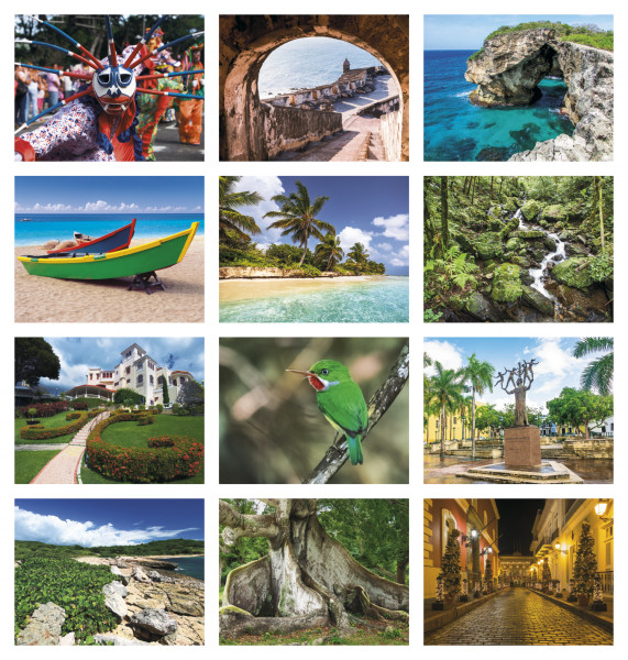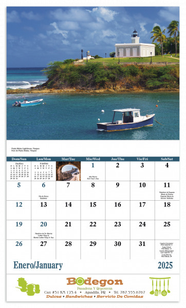 Learn about Puerto Rico in this calendar that features beautiful images of landmarks and scenery from the country.