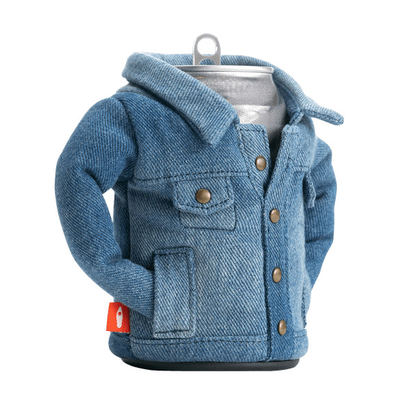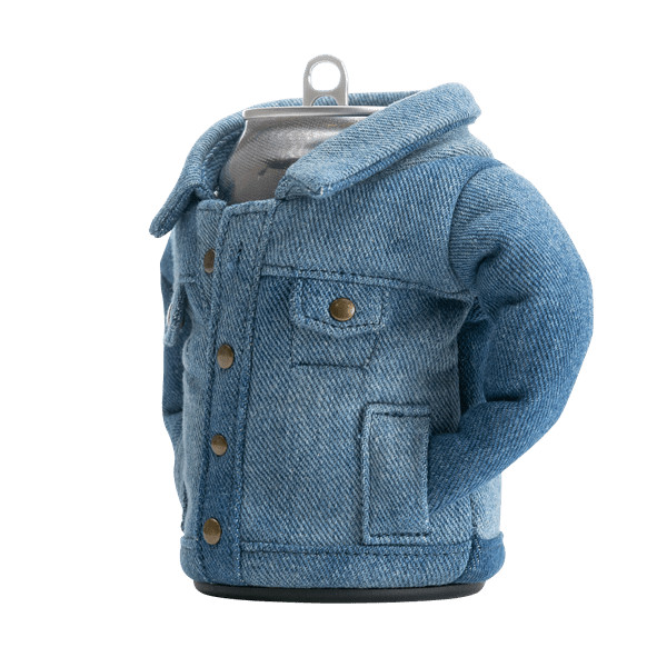 - Classic jean-style beer can jacket