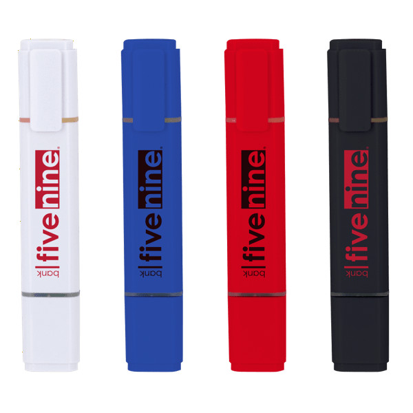 Meet the Quad Recycled Highlighter a colorful, eco-conscious way to make your notes pop! Crafted from recycled ASB plastic, this compact tool keeps four vibrant hues at your fingertips for effortless organization and creativity. With its modern white body and transparent rings showcasing the ink inside, this promotional product is perfect to be custom branded with your logo for eco-minded office giveaways or events.