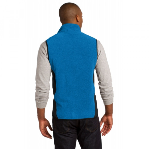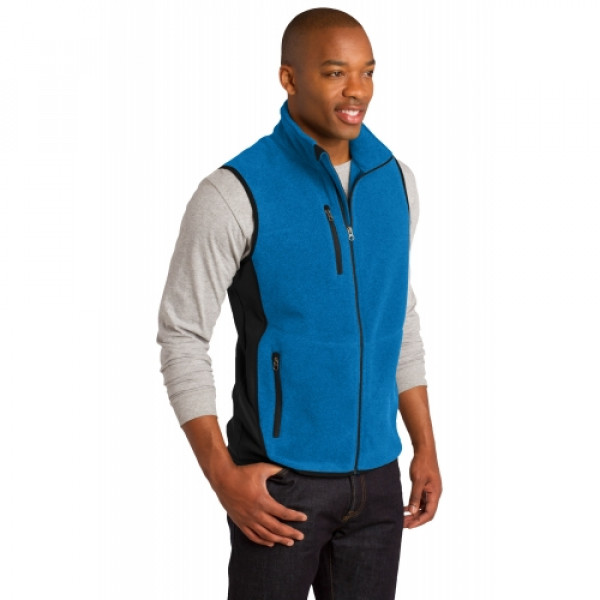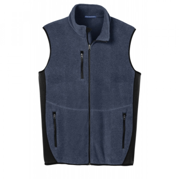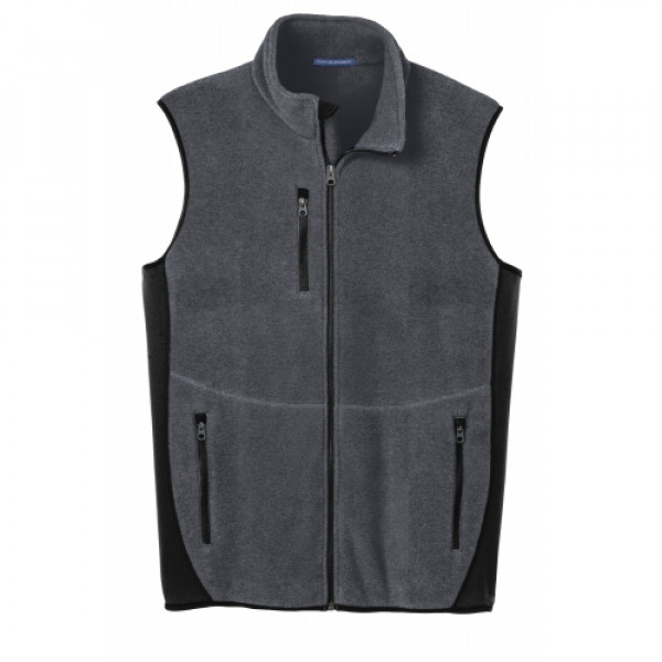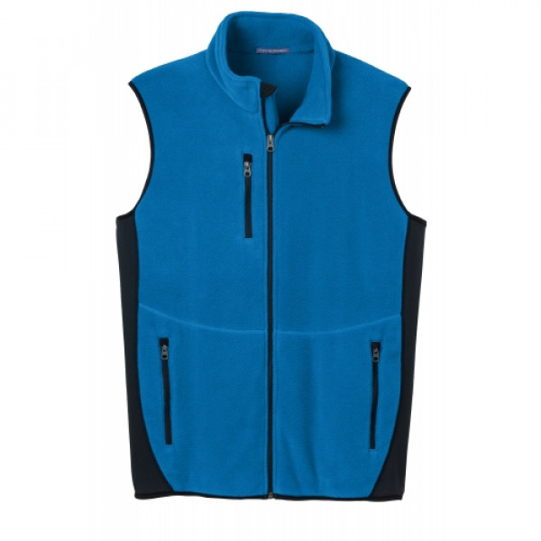 The Port Authority® R-Tek® Pro Fleece Full-Zip Vest adds warmth without the extra bulk of a heavy jacket. Made from 100% polyester fleece with poly/spandex side panels, this vest is stylish and comfortable. ::Anti pill, 12-ounce, 100% polyester R-Tek Pro fleece::88/12 poly/spandex side panels::Choose from 4 classic color combinations::Reverse coil zipper with chin guard, zippered chest pocket::Front zippered pockets with zipper garages::Elastic binding at armholes and hem