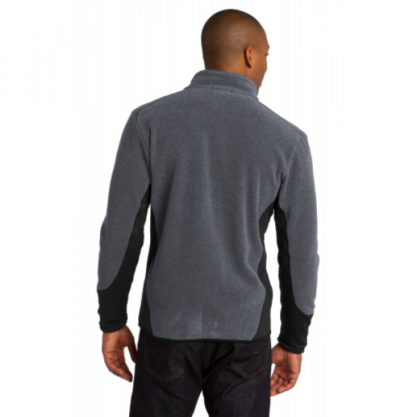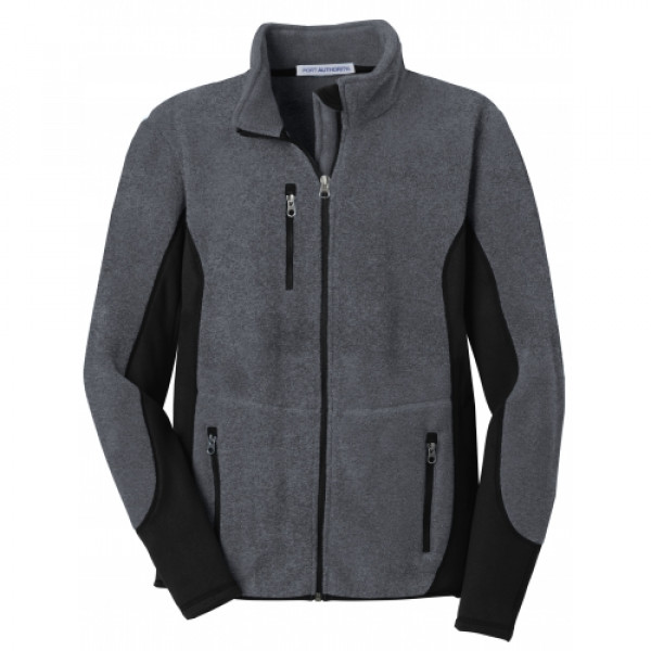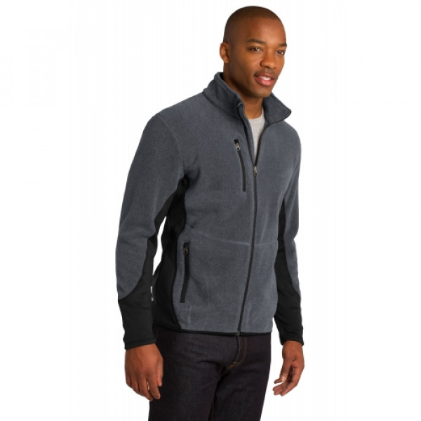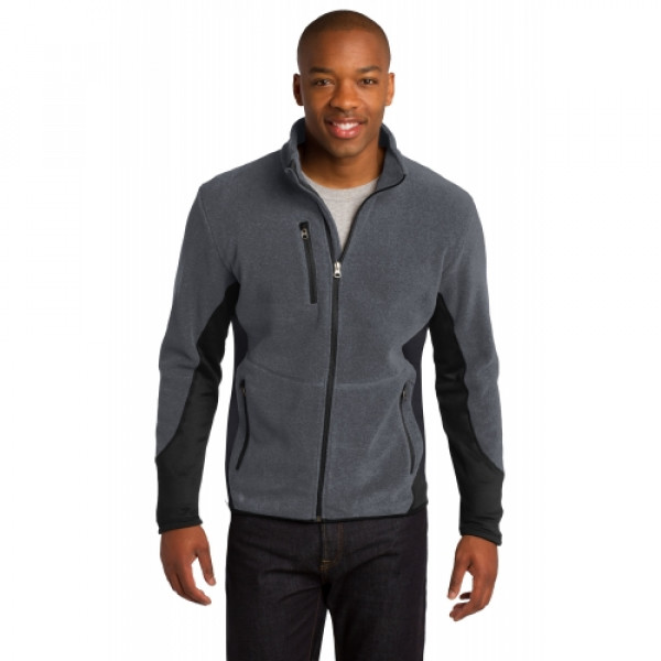 The Port Authority® R-Tek® Pro Fleece Full-Zip Jacket is will keep you warm and on trend. Made from 12 ounce, 100% anti pill polyester fleece with poly spandex side panels, this jacket is engineered to move with you. ::12-ounce, 100% anit pill polyester R-Tek Pro fleece::88/12 poly/spandex side panels::Choose from 3 on-trend colors ::Reverse coil zipper with chin guard::Zippered chest pocket::Front zippered pockets with zipper garages::Elastic binding at hem