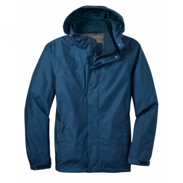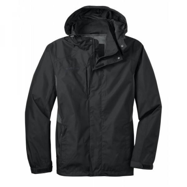 From misty mornings to evening downpours, this fully seam sealed, color-block jacket will help keep you dry and protected from whatever Mother Nature throws at you. 5000MM fabric waterproof rating, 5000G/M2 fabric breathability rating, detachable hood with drawcord and toggles for adjustability, storm flap with hook and loop closures, zippered chest pocket, front zippered pockets, adjustable tab cuffs with hook and loop closures and an open hem with drawcord and toggles. ::Contrast Eddie Bauer logo on right chest::WeatherEdge® logo on left sleeve::100% polyester dobby shell, mesh body lining and 100% nylon accents