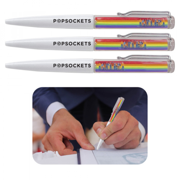 The Rainbow Floating Pen adds a touch of fun and whimsy to your writing experience. Its unique floating design creates an eye-catching visual effect, while the vibrant rainbow pattern adds a burst of color. Perfect for everyday use or as a playful promotional item.