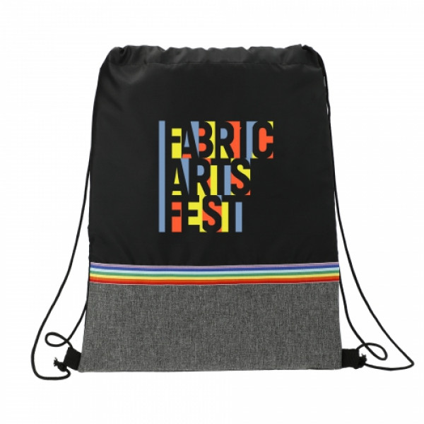 ::The Rainbow RPET Drawstring Bag features a pop of rainbow colors and graphite color-blocking. ::This bag is manufactured from 100% recycled 210d polyester made from water bottles.::Through a partnership with 1% For The Planet one percent of sales of this and all EcoSmart products will be donated to nonprofits dedicated to protecting the planet.