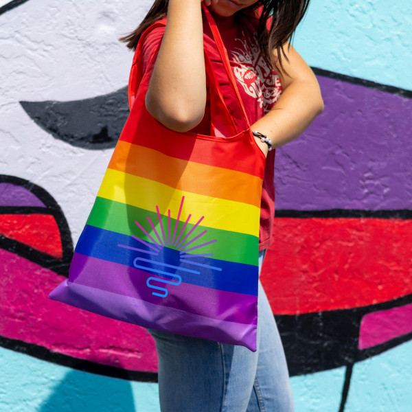 - Vibrant rainbow tote bag design that stands out at events, stores, and everyday outings