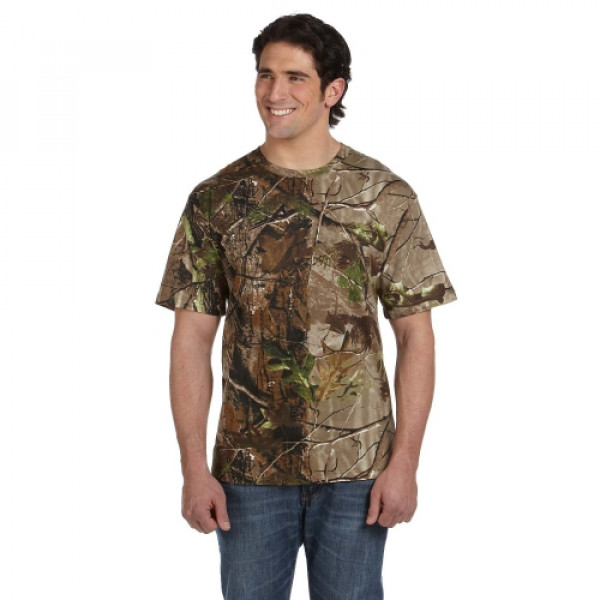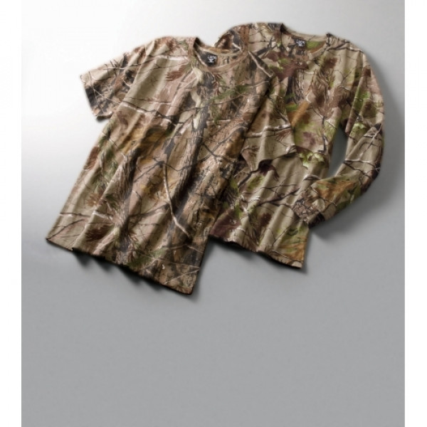 Make a statement - or hide out - in the Code V Officially Licensed Realtree® Camouflage Short-Sleeve T-Shirt. Made of 100% ringspun cotton jersey, this T features a ribbed crew neck, back locker patch and a double-needled hem along the bottom and the sleeves. It's taped shoulder to shoulder to ensure a good fit, wear after wear. If you're imprinting it, a bleed-resistant ink is recommended for the best result.::5.5 oz., 100% ringspun cotton jersey; ribbed crew neck (97% ringspun cotton, 3% spandex)::Taped shoulder-to-shoulder::Back locker patch::Double-needle hemmed bottom::Bleed-resistant ink is recommended for printing::Double-needle hemmed sleeves