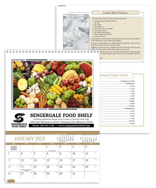 Convenient design and quality construction set these calendars apart. 12 pocket pages feature fabulous recipes on the back.