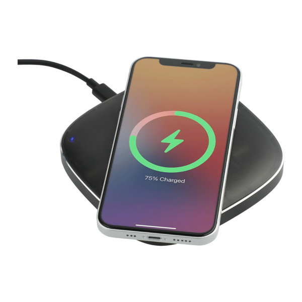 The Recon 15W Wireless Pad with Power Detecting Coil can detect the position of your phone on the charging surface and then provide wireless charging activated with just a tap. Supports different wireless charging modes: up to 7.5W for All iPhone 8/X/11/12/13/14/15 Series; up to 15W for Samsung Galaxy S9/S9 Plus/S8/S8 Plus/Note 8/9 and more, and 5W standard charging for all other enabled devices. It is recommended to use a quick-charge power adapter (not included) for fast charging. Includes a 39-inch USB-A-to-Type-C charging cable. Packaged in a FSC®-certified premium gift box.