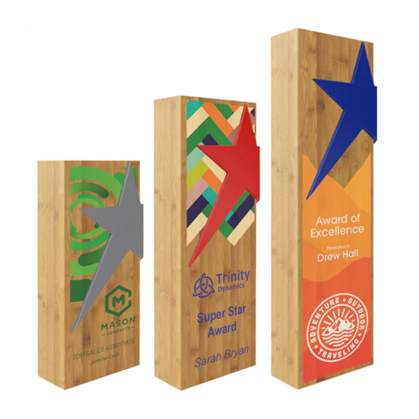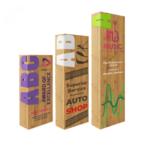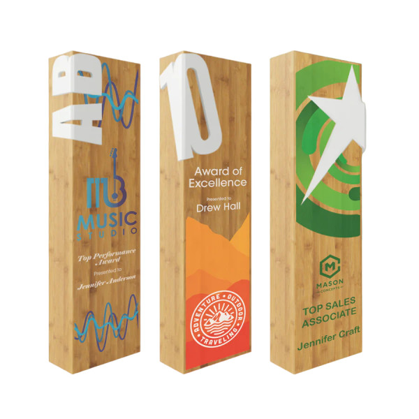 Make a lasting impression with the natural elegance of the 7" Rectangular Bamboo Award. This eco-conscious piece combines modern style with customizable flair, allowing you to add accents like stars, numbers, letters, years, or a sleek metal band. Ideal as a custom-branded promotional product for recognition events, milestones, or corporate achievements.